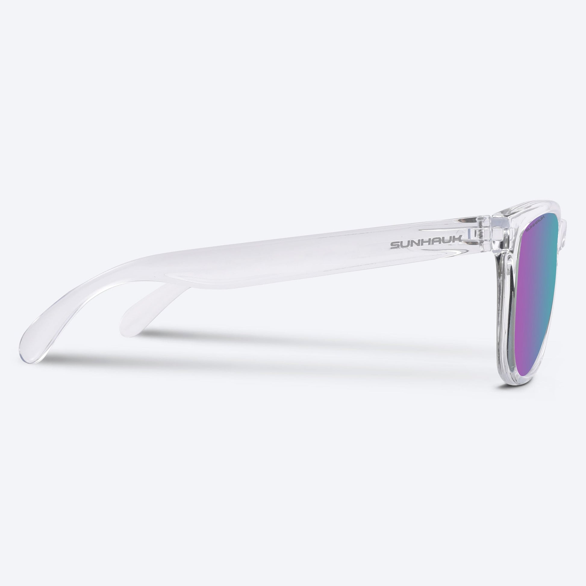 Featuring an iridescent blue-purple lens and a crystal-clear TR90 frame, these sunglasses offer a perfect blend of style and durability. Polarized UV400 Cat. 3 lenses deliver sharp clarity and superior sun protection, while triple-coated scratch resistance and oleophobic coatings ensure lasting performance. Designed for those who seek freedom and creativity, they elevate your vision and adventure.
