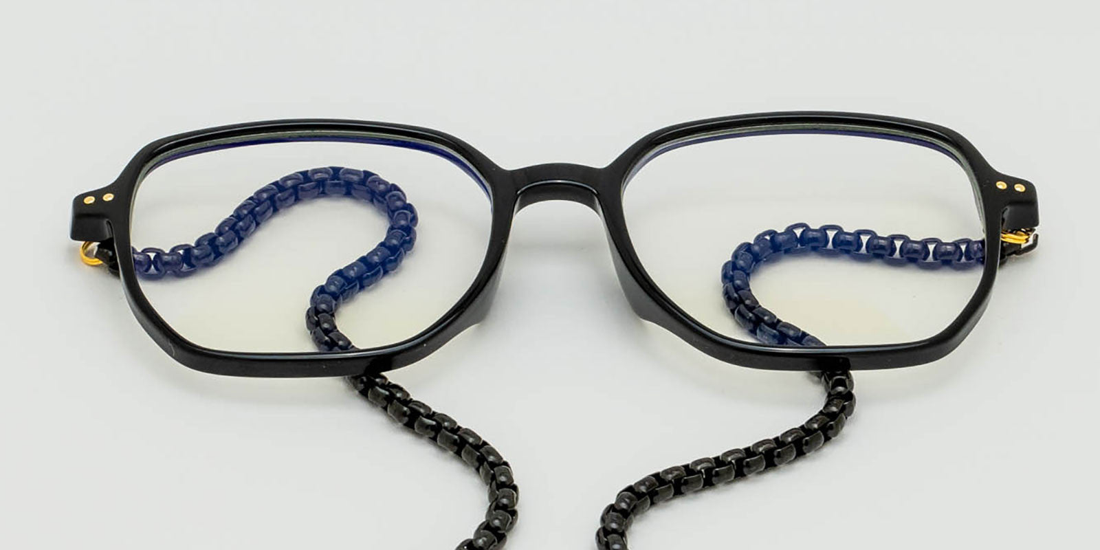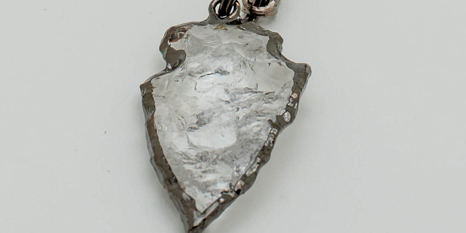 Square plastic frames.Gunmetal chain. Gunmetal plated clear quartz arrowheads.